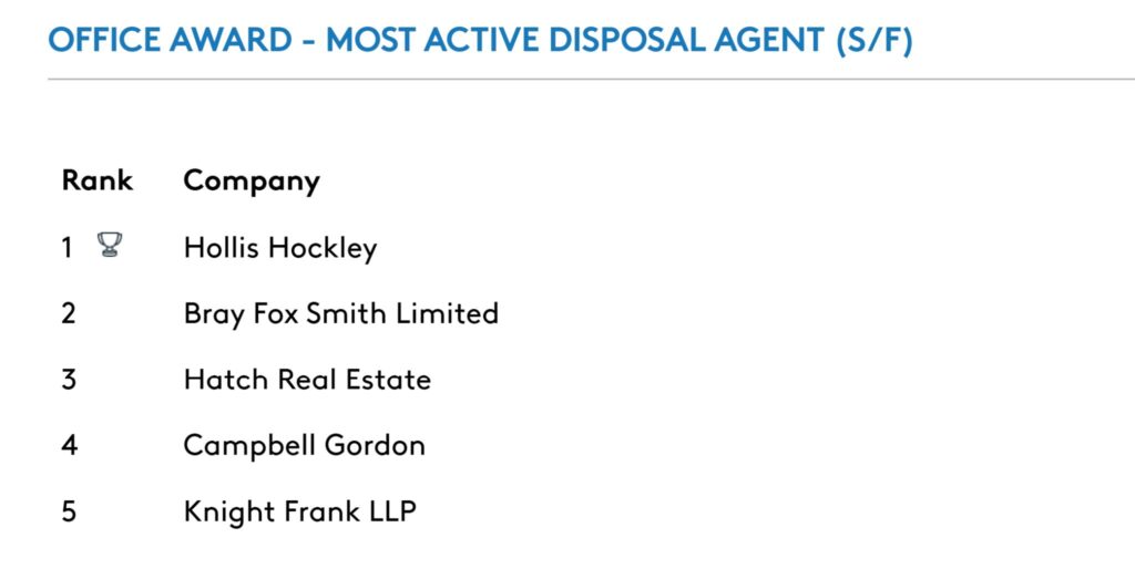 We are thrilled to announce that Hollis Hockley LLP has been recognised once again as the Most Active Disposal Agent in both number of deals and square footage by CoStar.