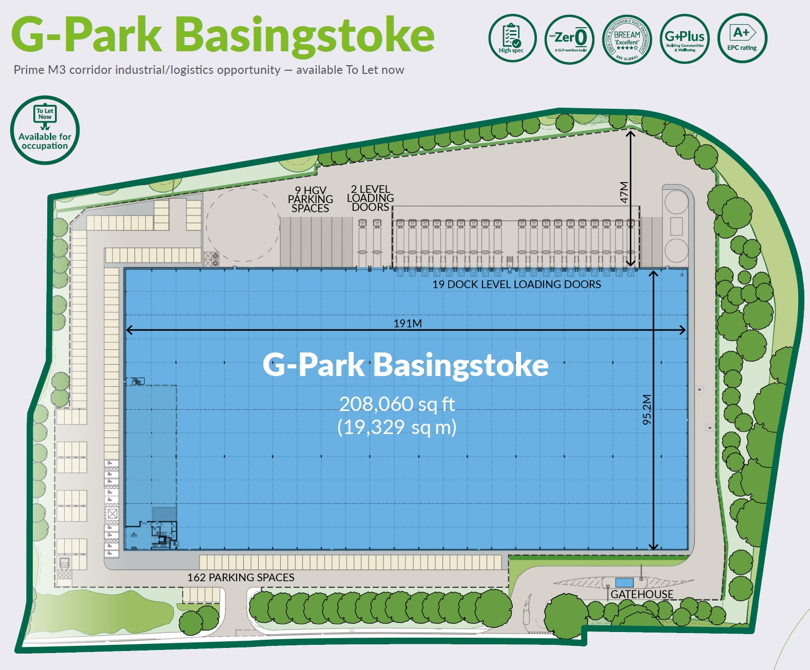 G-Park Basingstoke is a new, speculative development, offering an unrivalled opportunity to service the London and Wider South East markets with excellent infrastructure links in an established logistics location. G-Park benefits from a skilled local and regional labour pool with over 86% of the population qualified to NVQ2. With over 800,000 households within a 30 mile radius and 5,620 homes planned for Basingstoke and Deane borough, both the potential labour supply and customer catchment are set to increase significantly. |