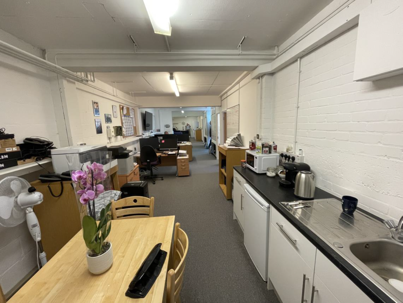Fully refurbished, self-contained office suite with the benefit of a private WC and kitchenette incorporating a sink unit, fridge and microwave oven, and own private entrance door.